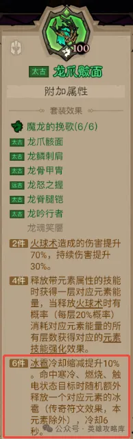 PS:剩余一件位置根据自身已有的暗能进行选择,优先保证魔龙挽歌六件套以及冰雹冷却缩减词条的洗练