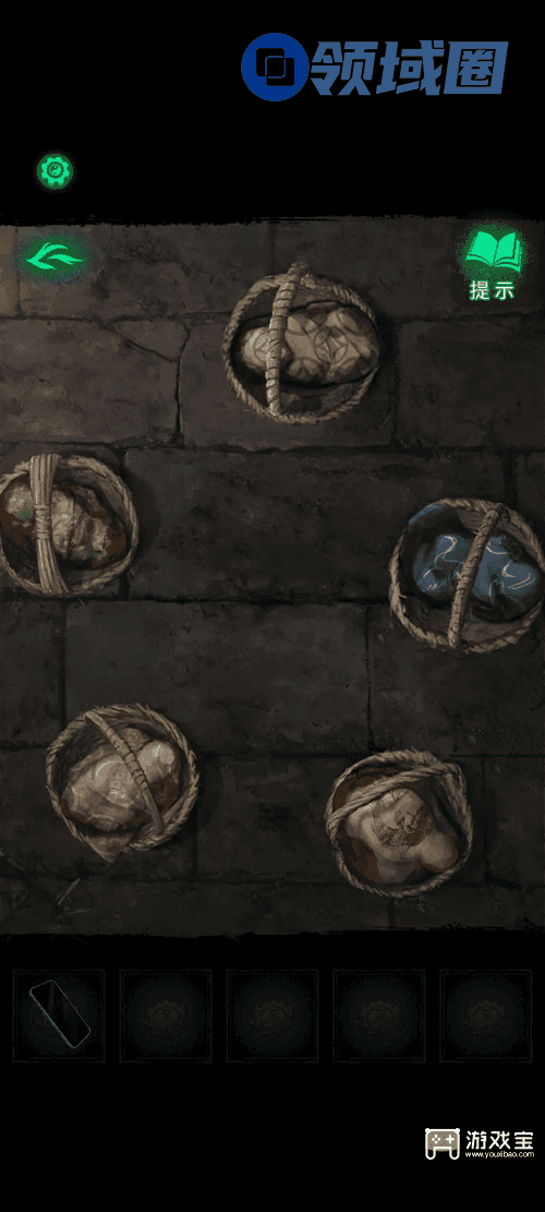 5、回到村内场景,在杂货店使用手机,得到提示(1321)进入右侧室内场景,点击灶台,用火柴点燃灶台,退出灶台点击右侧的风箱,根据提示拉动风箱把手(这里有时候按照提示拉会判错,猜测可能拉第三档的时候会判定为第二档,可以稍微再往外拉一点),离开风箱,用晾衣杆点击房梁上的布偶,经过动画后,用晾衣杆点击炉灶。获得,棺材钉,石片