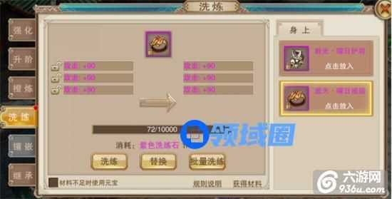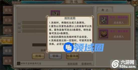 1、只有紫色及紫色品质以上,并且穿戴在身上的装备才能进行洗炼。