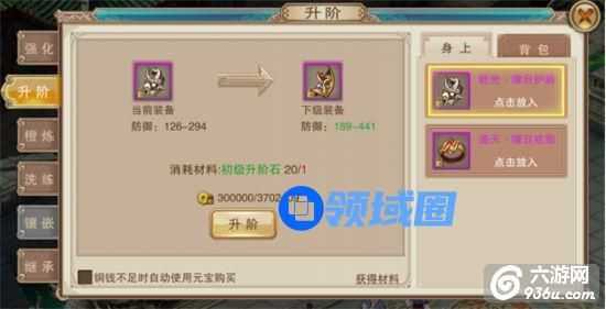 1、装备升阶可以提升装备的穿戴等级,所需穿戴等级越高的装备其属性也越好。