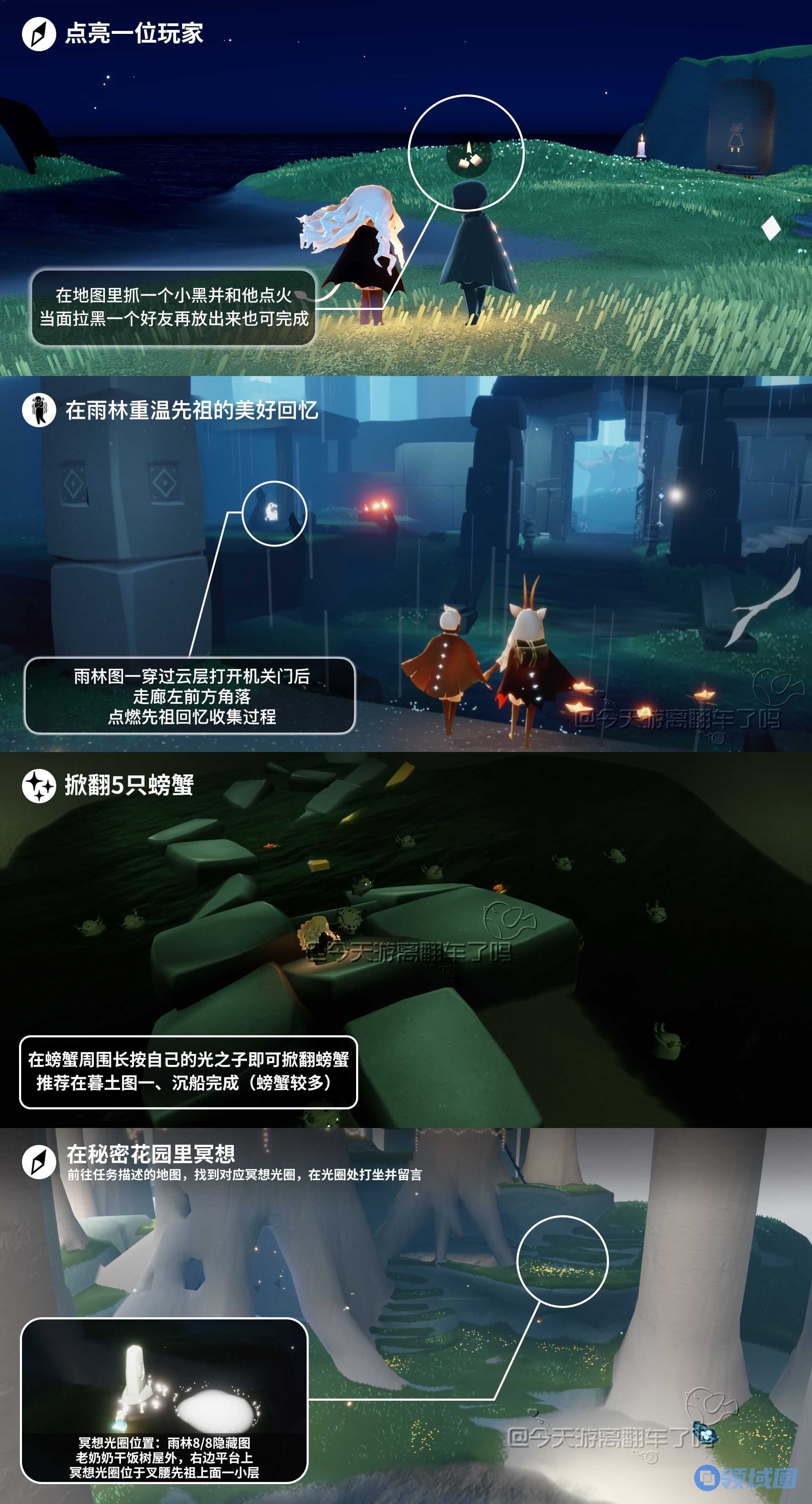 光遇今天的每日任务刷新在雨林,大家知道今天7月9日的具体任务信息和做法流程吗?下面为大家带来光遇7.9每日任务怎么做的具体内容和方法,感兴趣的玩家们千万不要错过哦!