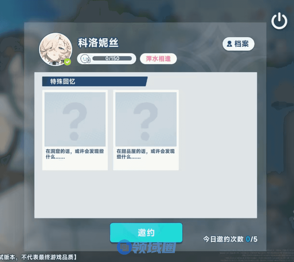 每日可向角色发起5次邀约,完成邀约中的特殊回忆任务,提升角色默契值。