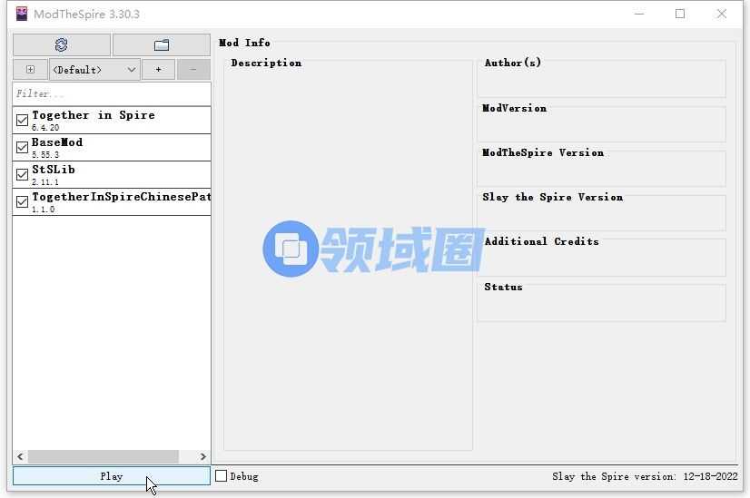 前置条件:启动的时候,需要把4个mod都打钩,点Play启动。