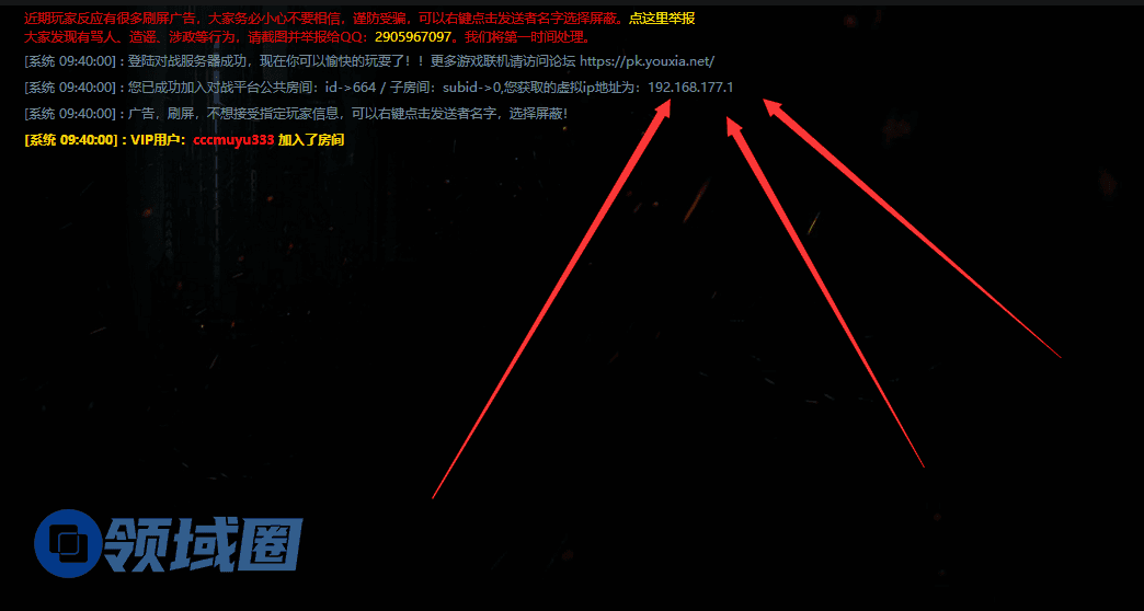 注意:端口号必须一样才能联机,推荐端口号:47584;主机IP就是你进专房给你的虚拟IP,格式一般是192.168.177.XXX,看下图。