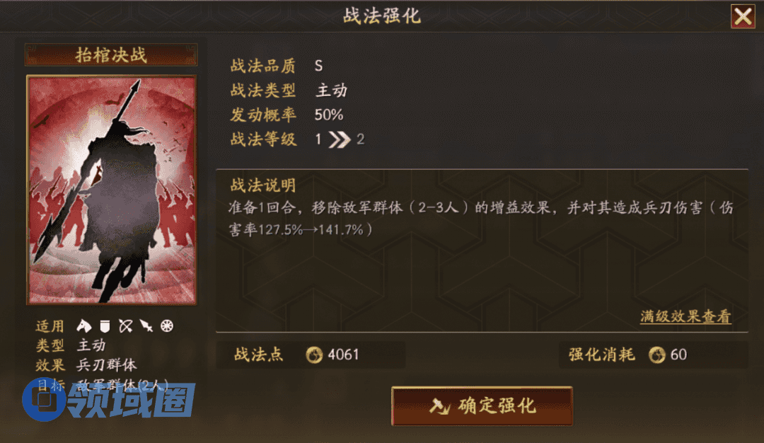 赵云:乐善好施-锤炼-统军,全统,先登是非常好的战法,特别是针对武力武将,比锦帆军更好用,降低统率很香;