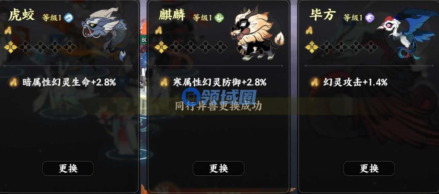 战斗型异兽可以给幻灵提供防御加成属性