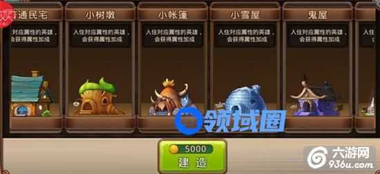游戏中有6种房屋,最挫的是普通民房,没有加成;其次是5种元素类型的房屋,