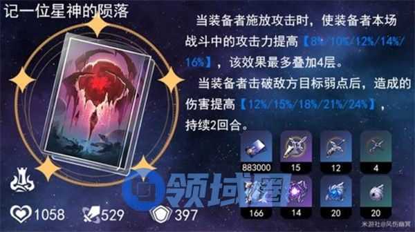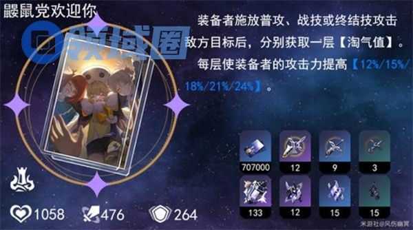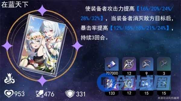 提供爆发所需的暴击伤害与攻击力双重加成。