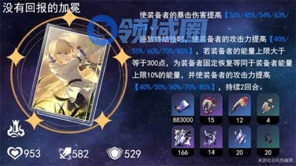 使用大招后回复36点能量(搭配Saber本体360点大招能量上限,等于降低技能能耗)。