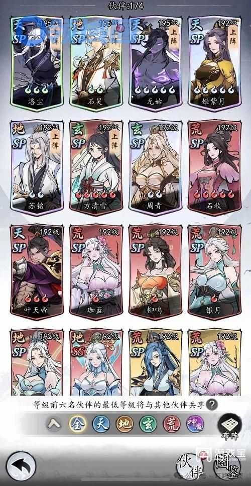 1、阵容构成:姬紫月(输出)、落尘(辅助)、荒主(坦克)、魄瑜侯(控制)、苏铭(治疗)