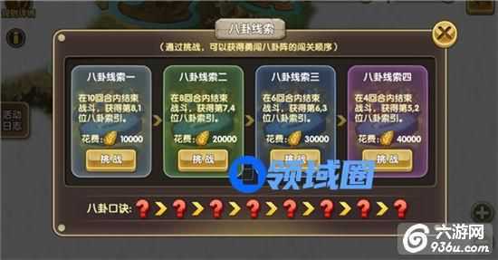 在世界探索中主公还有机会探索到“八卦线索”,进入后通过挑战获胜可以获得八卦口诀,在“勇闯八卦阵”玩法中按口诀逐一进行挑战能最终获得八卦宝箱奖励哦~