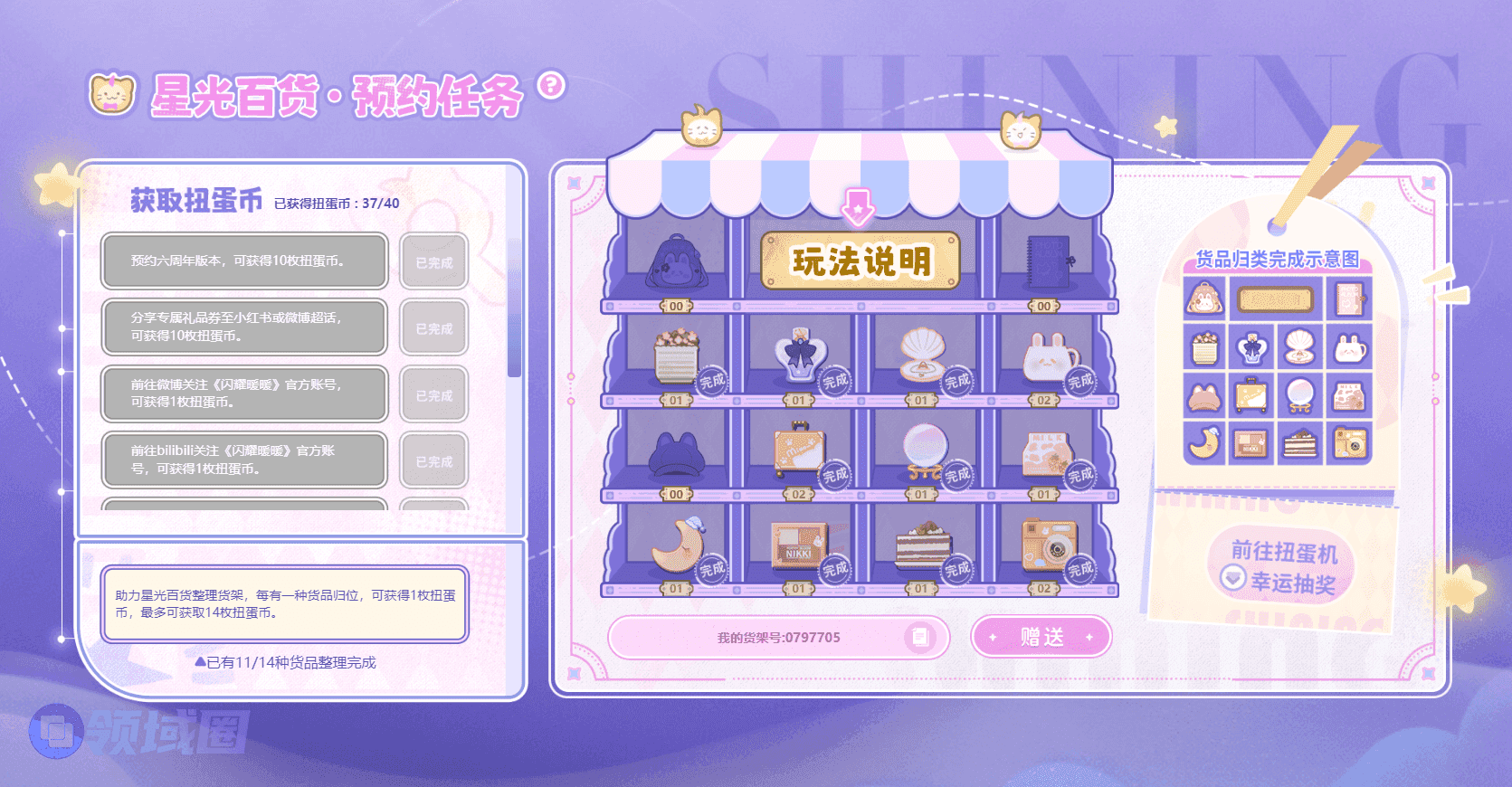 任务二:助力星光百货整理货架,挪动货品使其归位,共可获得14枚扭蛋币~