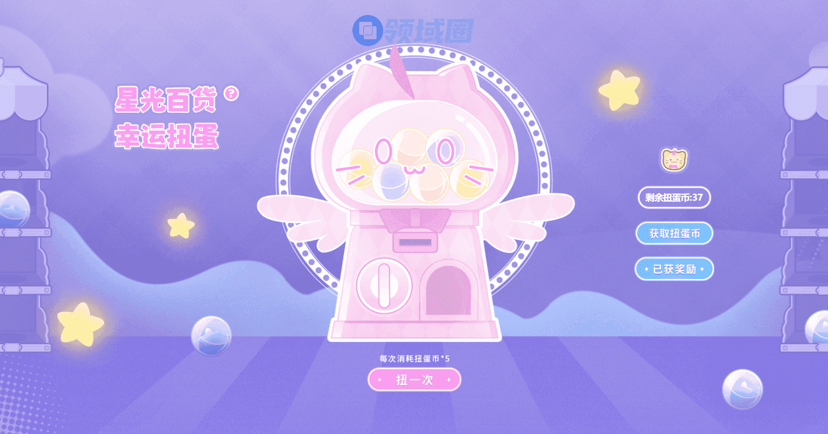 5枚扭蛋币即可启动一次扭蛋机!