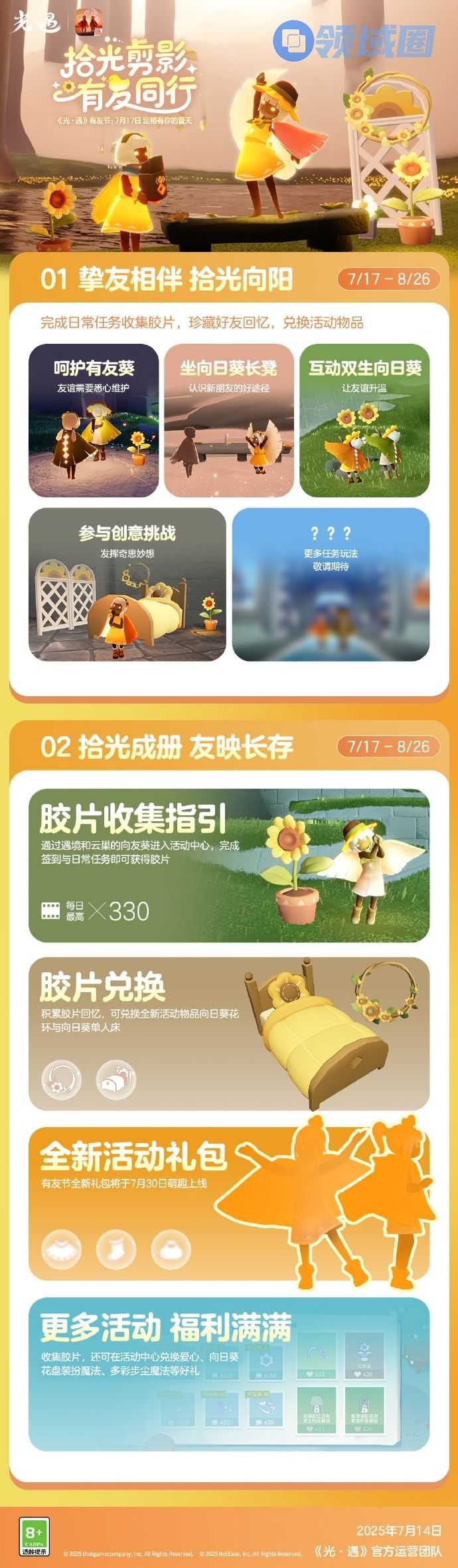 以上就是关于光遇有友节怎么玩的全部内容了,希望能为各位玩家们带来帮助,想要了解更多游戏攻略及资讯请持续关注领域圈游戏。