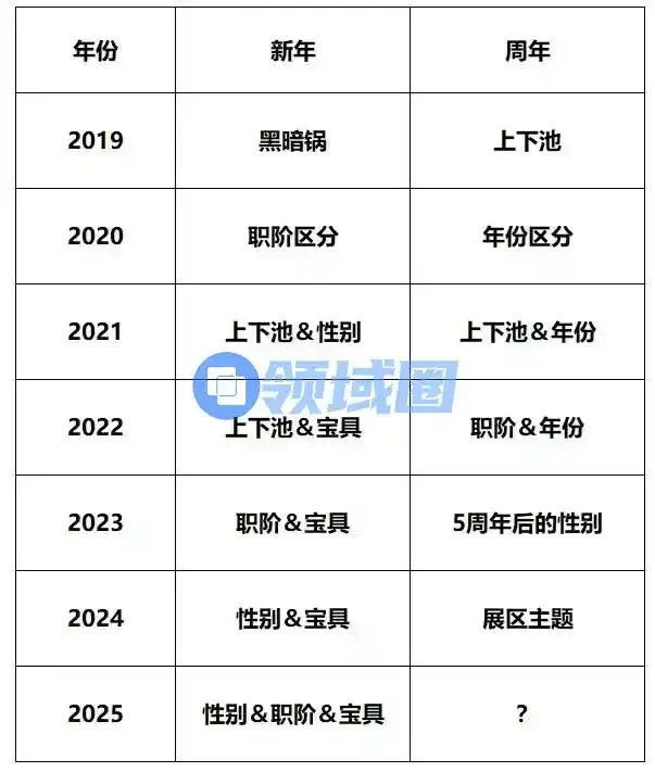 以上是过去的福袋类型,其实会发现,去年周年的福袋已经不安常规套路出牌了,说是展区主题,其实也可以说是按活动类型归类。
