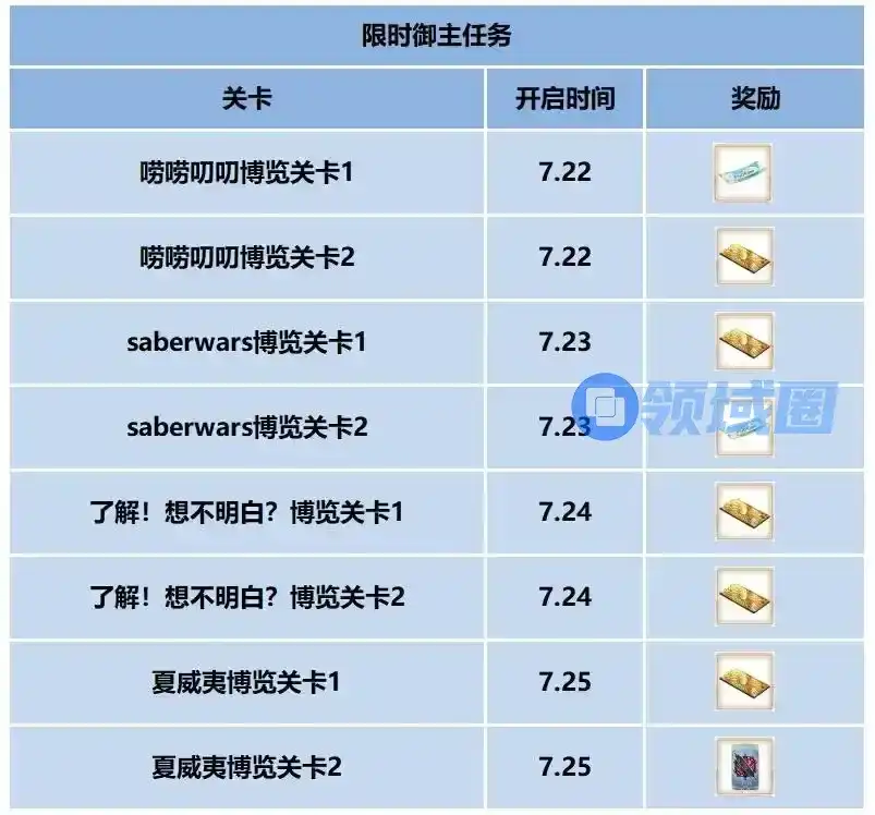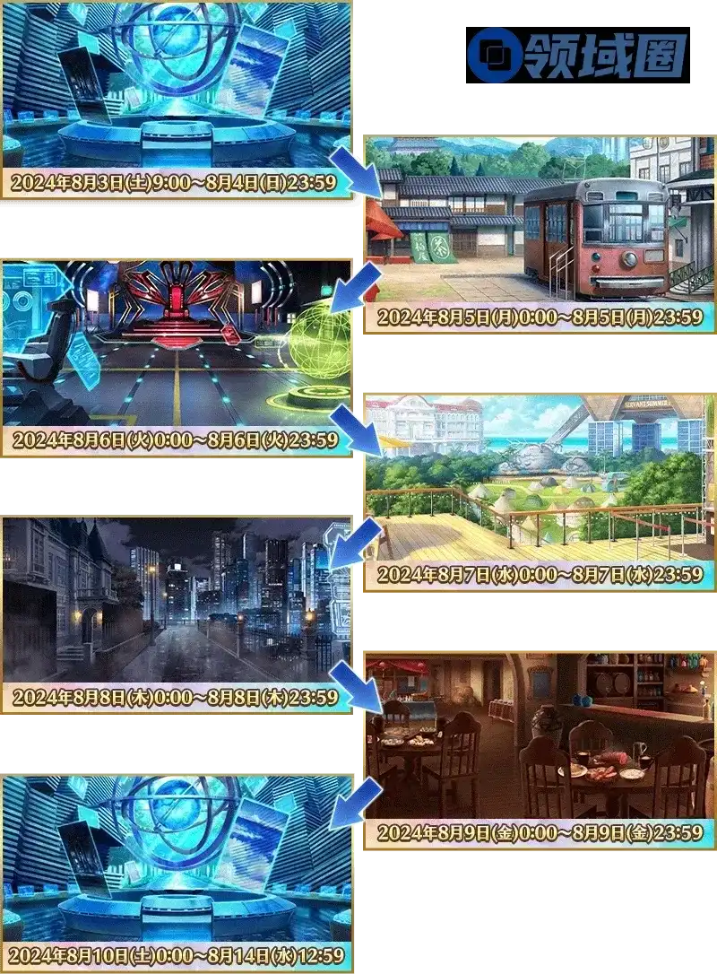 7月17日开始,每天会开启2个回忆关卡,这里的时间是根据日服的时间推测的,具体开启情况请以国服正式公告为准,这次的回忆关卡是跟展区主题相关的高难本,难度不算很高,到时候也会录制视频演示供大家参考。