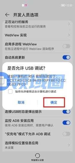 步骤2:将USB 数据线连接至电脑,在手机端选择“传输文件”,然后在弹出的“是否允许USB调试”对话框中点击“确定”。