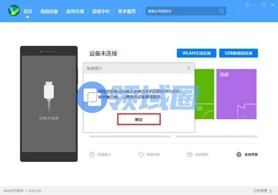 在电脑端弹出的“将在您的移动设备上安装与本机匹配的华为手机助手客户端,以便提供设备管理服务”对话框中点击“确定”。