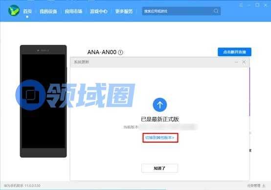 步骤6:在电脑端弹出的系统更新界面点击“切换到其他版本”。