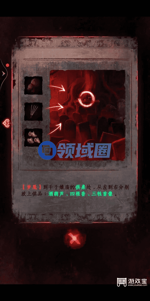 20.放入贡品:将五谷等贡品放入千子娘庙,之后完成后续剧情,第五章结束。