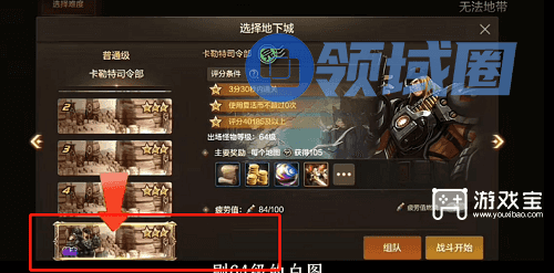 2、完成了主线任务之后,然后去普通级别卡勒特司令部刷第5个地图。这第5个地图的话是不能开启疲劳燃烧去刷,必须得关掉疲劳燃烧,因为我们65级开始就可以使用疲劳燃烧,所以大家不要这样去使用。