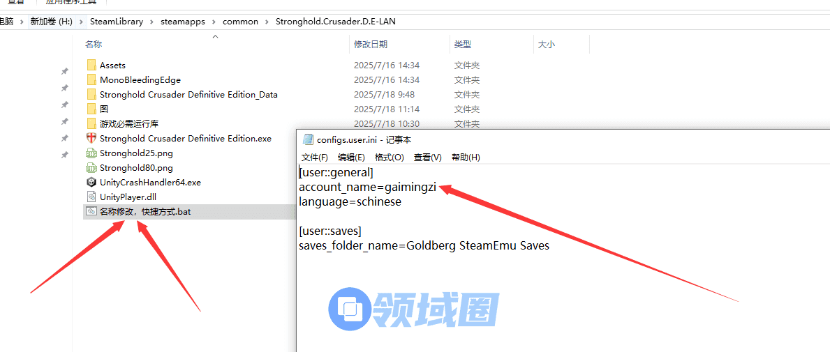 双击游戏目录下面的名称修改,快捷方式.bat,找到“account_name=gaimingzi”,把“gaimingzi”改成自己想要的名字,保存。