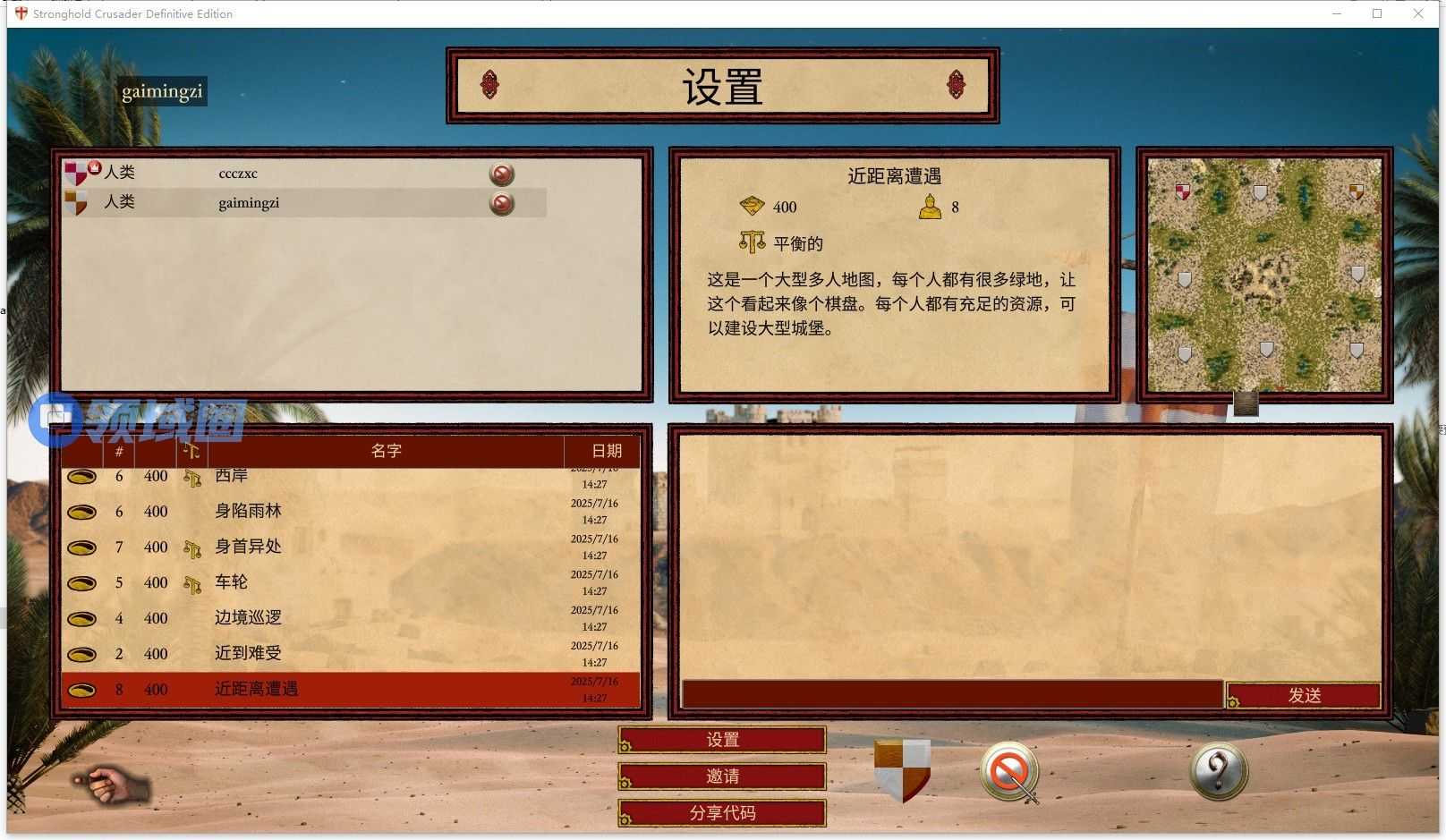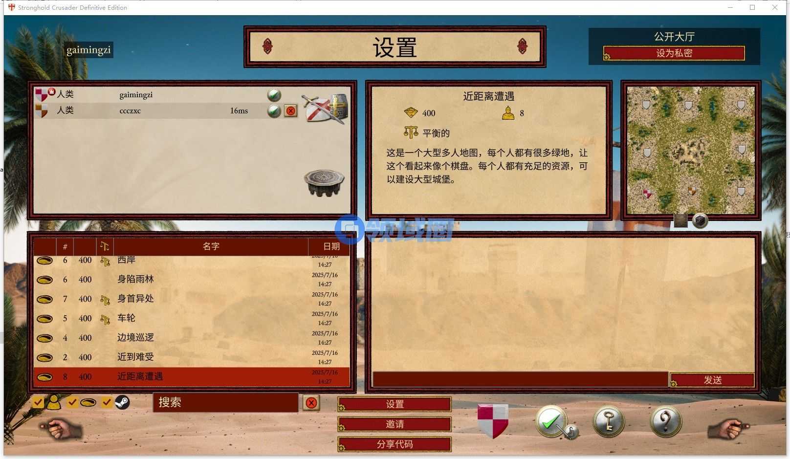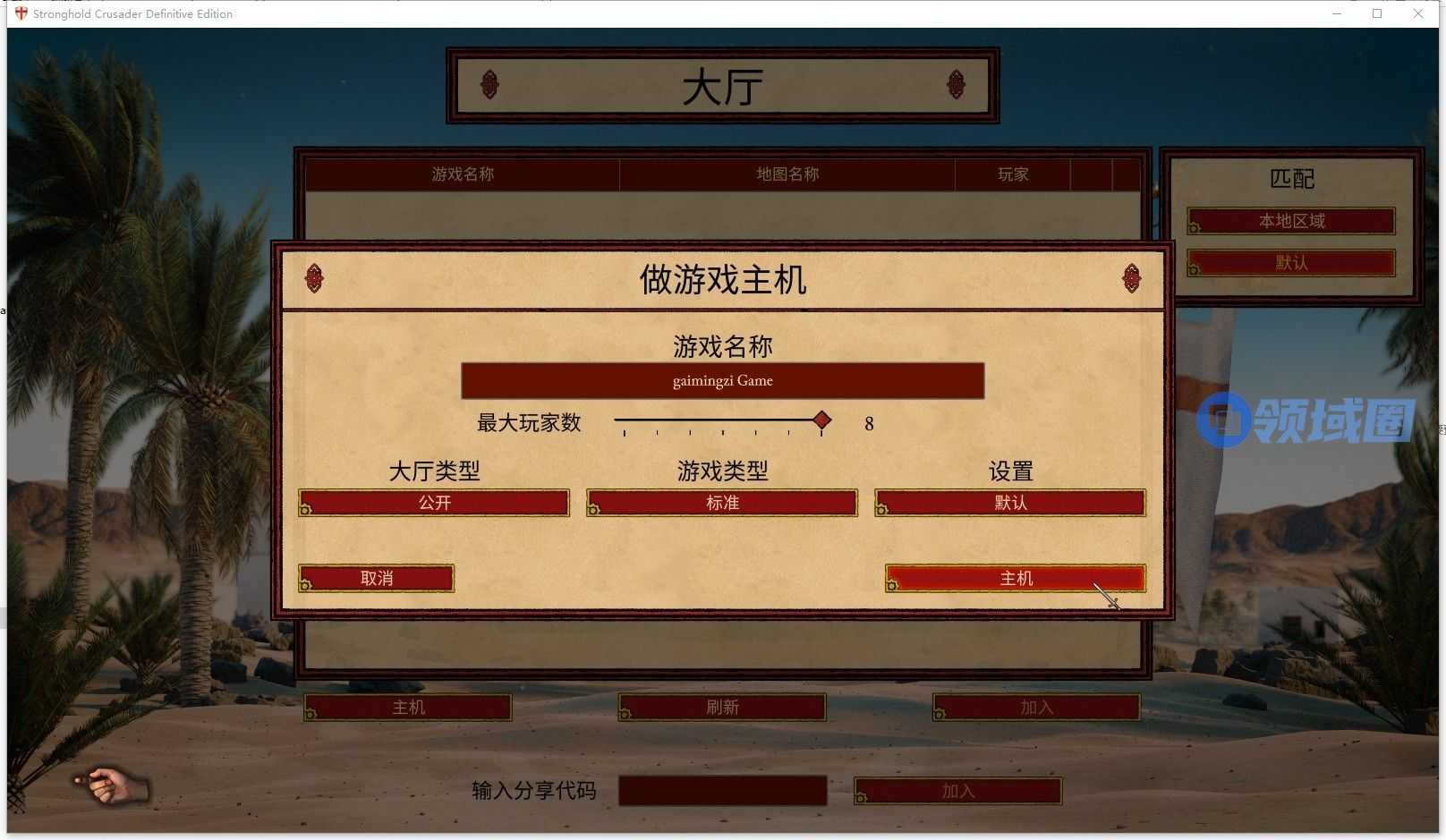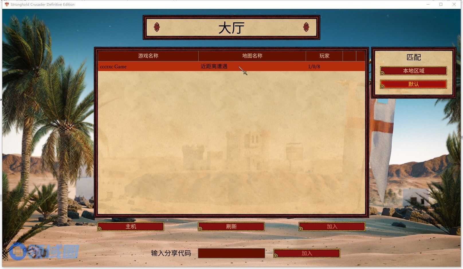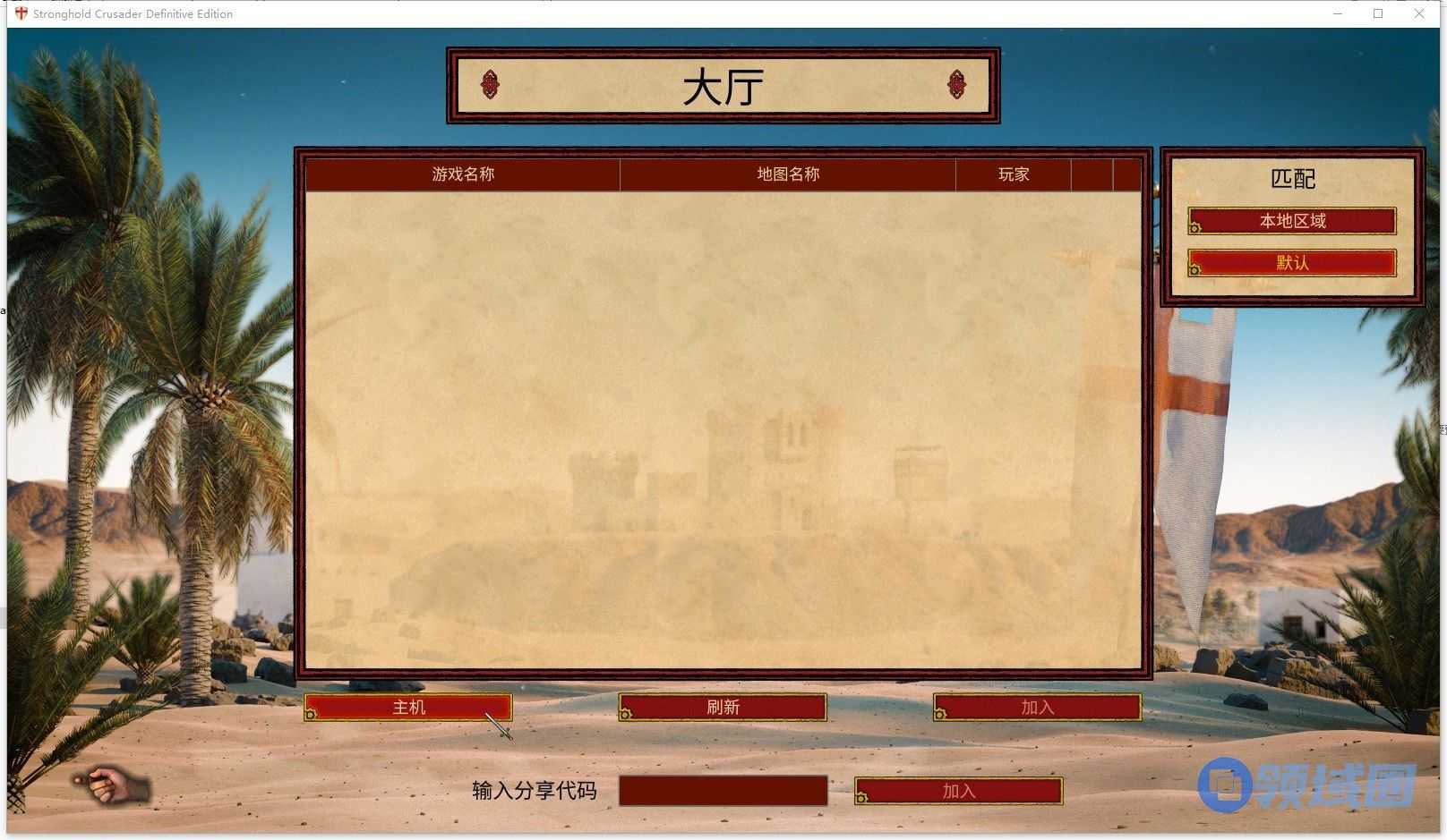 1:通过游侠对战平台《要塞十字军东征:决定版》房间进入游戏。
