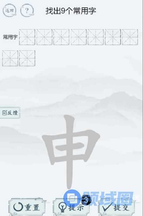 汉字大师的魔法小程序最新的找字游戏关卡中,玩家需要从申字上找出9个常用字后即可过关,但很多玩家不知道这九个字具体是哪个,可以参考汉字大师的魔法申找出9个常用字。