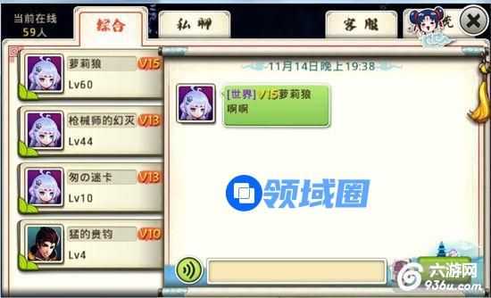 综合聊天系统可以与全服玩家共同交流,左侧列表为刚刚在综合聊天频道发过言的玩家点击玩家头像,可以展开列表: