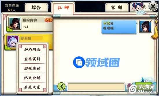 左边列表为当前所有和你私聊玩家的名单,其中亮黄色的为当前界面中与你聊天的玩家,点击玩家头像所出现的列表中。