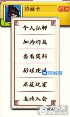 切磋比试:立即进入比武场,用自己的比武场进攻阵容挑战该玩家的防守阵容。