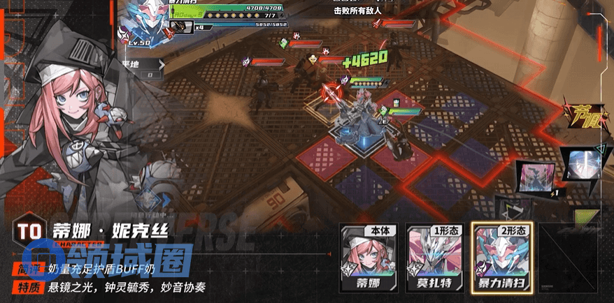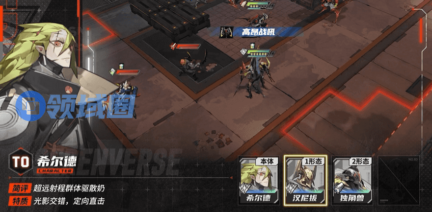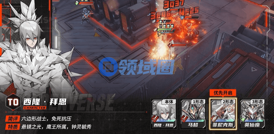 2 形态菲尼克斯,擅长生存和绕后群攻。和他的名字一样的自带免死回血被动,1技能叠满天赋后不消耗能量,飞行移动配合长射程的2技能,最远能清理9格远的杂兵,开荒体验十分良好。