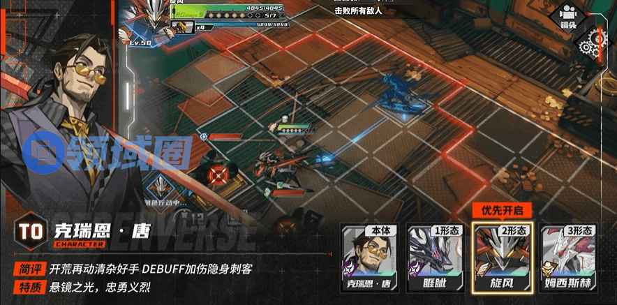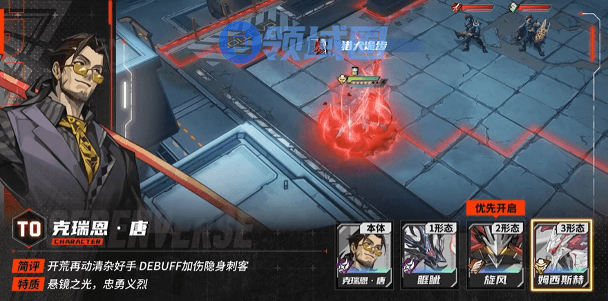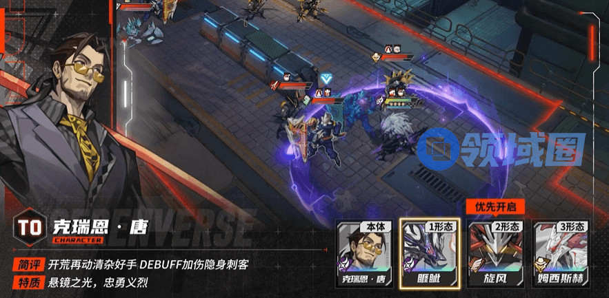 克瑞恩·唐,擅长对单输出的机制怪,2形态的击杀再攻击+再移动机制,开荒体验极佳,强烈建议开启。3形态主打隐身切后排,推荐后期开启。老唐的天赋效果,能自动选定敌方施加决斗状态,能增加己方伤害,削弱敌方输出。