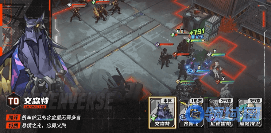 维兹,开局即送的SSR前排,2格范围的护卫技能,在PVE环境中非常实用,前期配合医疗类角色,能够保护全队角色生存。