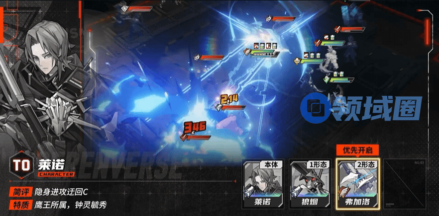 莱诺,隐身大狙,本体形态较为一般,强度主要集中2形态,天赋被动能隐身并加强伤害。