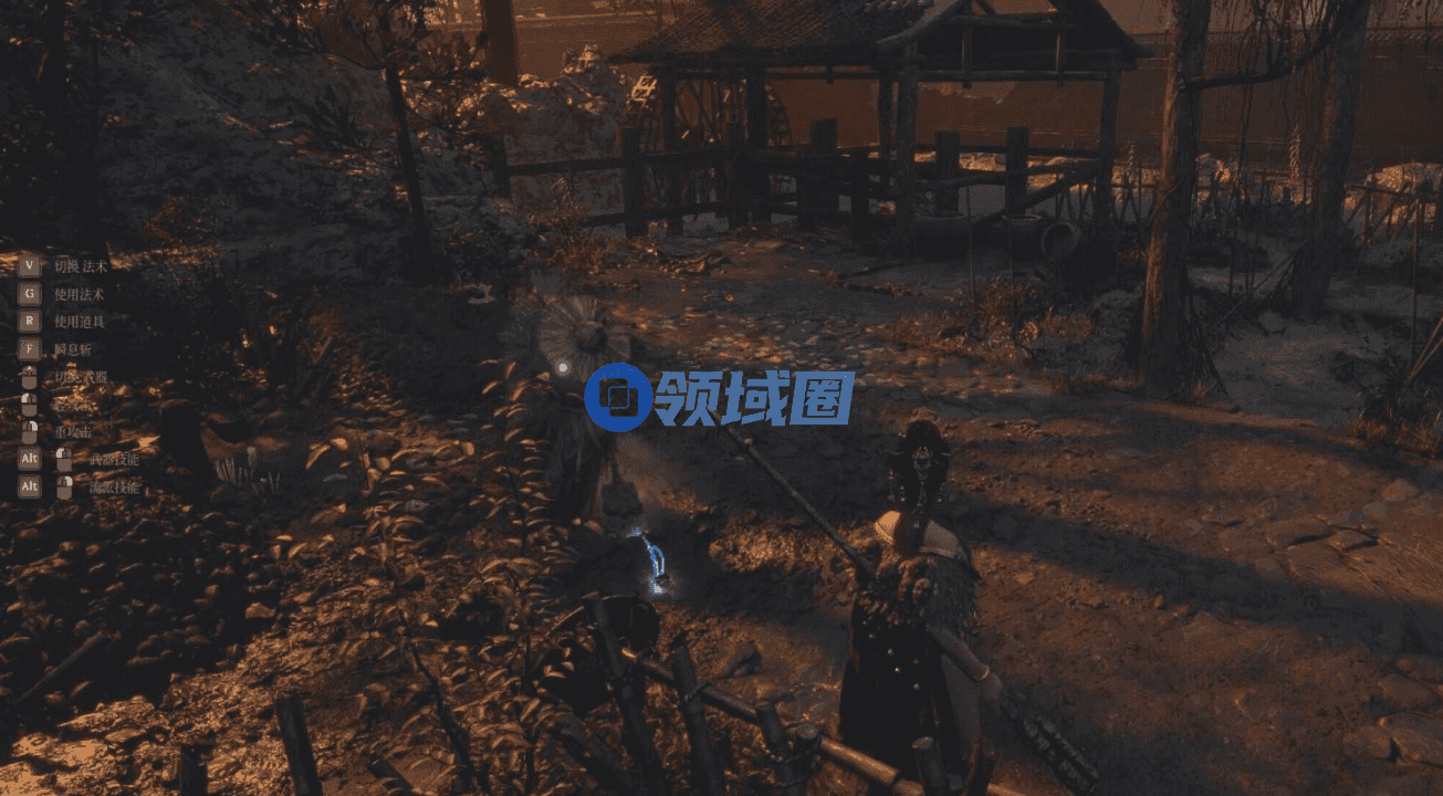 穿过第一道门后,往左看,左边红墙有个缺口,从缺口进入侧面区域。