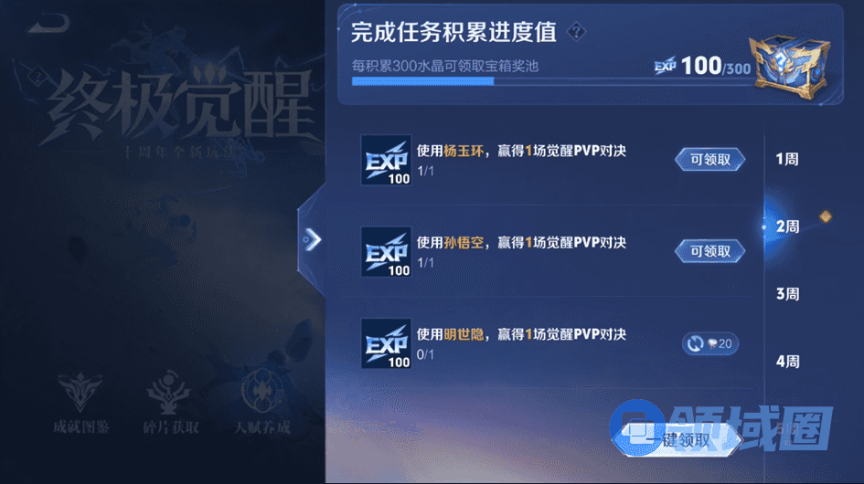 任务系统:每周刷新任务挑战,参与挑战,可赢得终极觉醒专属奖励