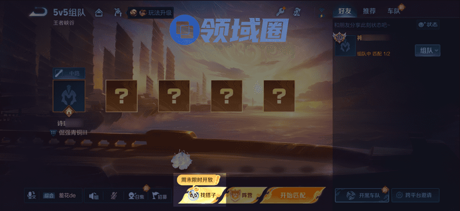 根据上周大家在5v5匹配等玩法中的反馈,本周起找搭子功能将继续灰度开放,暑期限时周末体验:每周五18点~周日23:59,5v5排位赛限时开放找搭子;