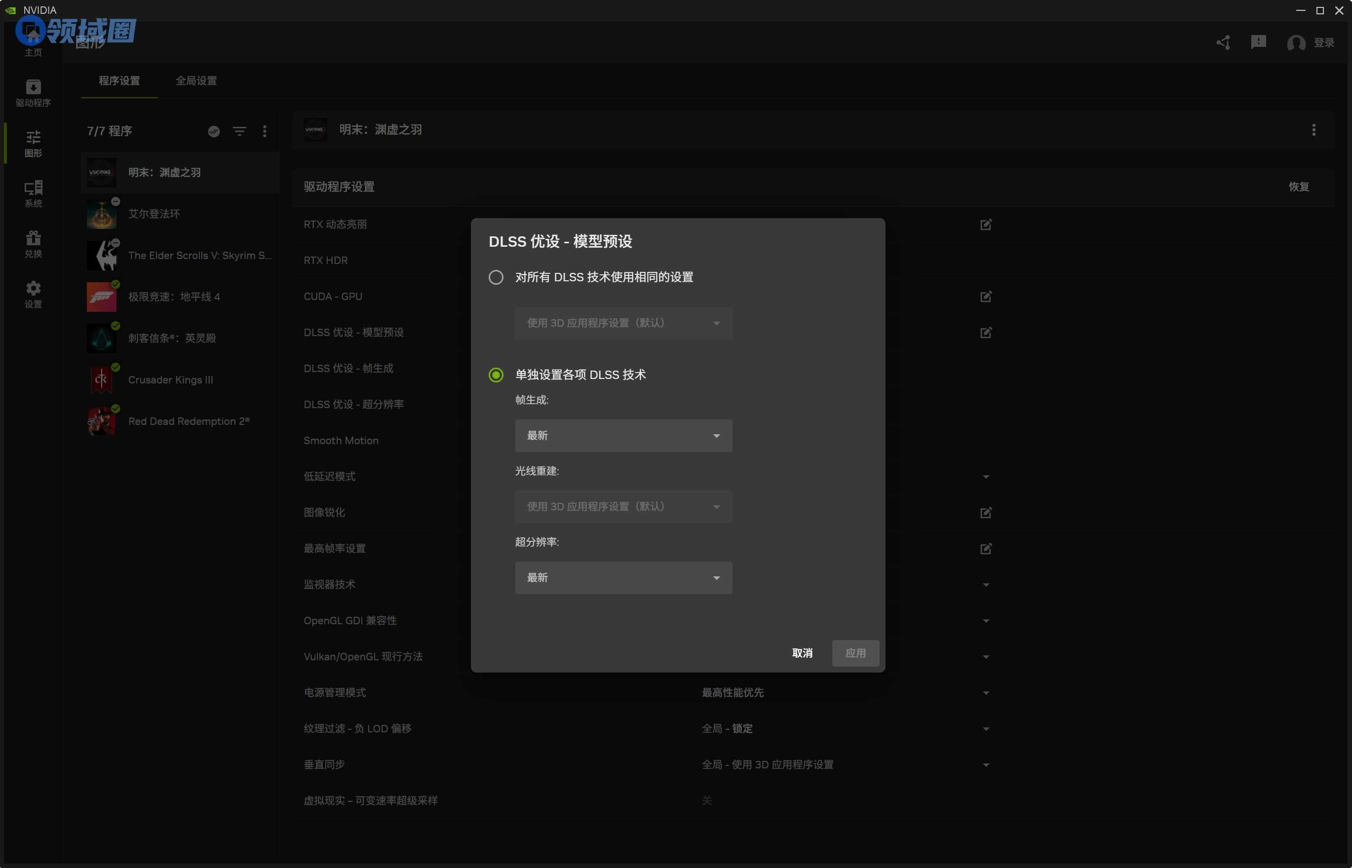 N卡APP里面设置没有选最新DLSS4新模型和插针独立设置导致的游戏内没生效。