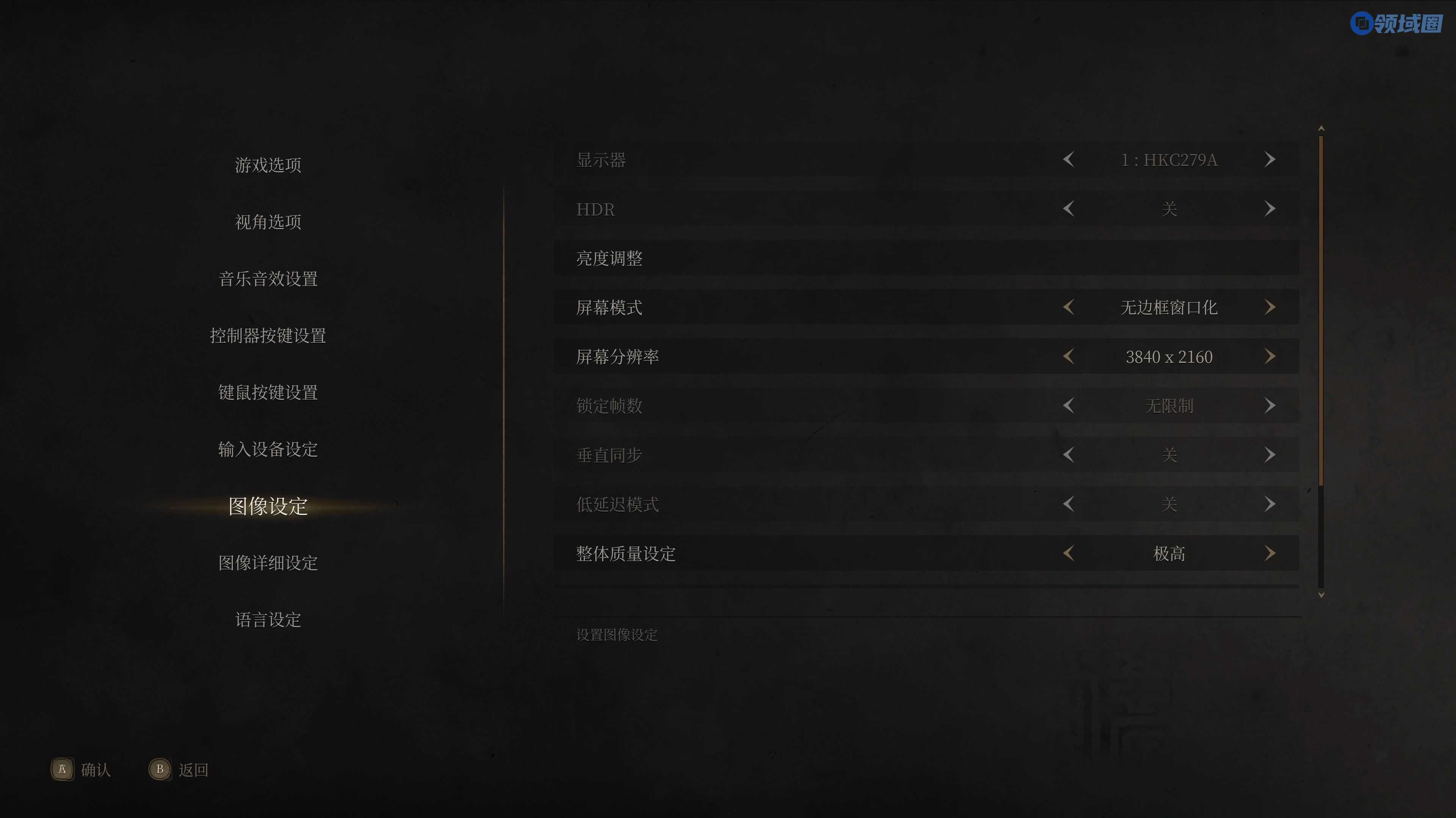 游戏画面设置选项,全默认极高。