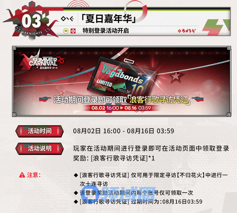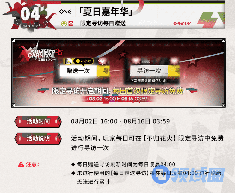 「夏日嘉年华」,限定寻访每日无消耗获取,时间:8.2~8.16