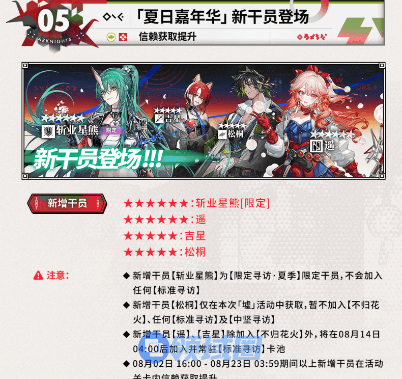 「夏日嘉年华」新干员登场,信赖获取提升,主打的还是这次登场的四位新干员。