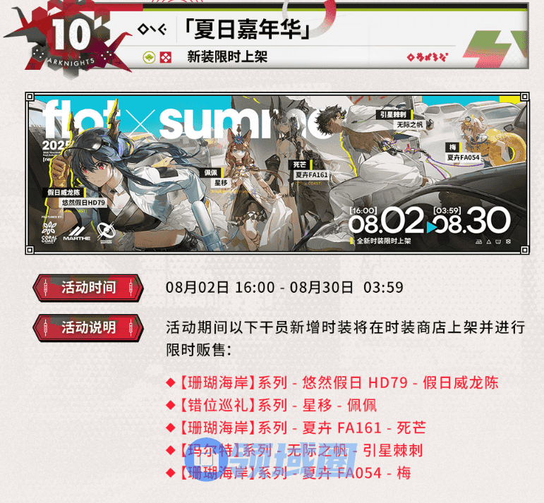 明日方舟有关2025「夏日嘉年华」限时活动即将开启,来看看相关的具体活动安排。