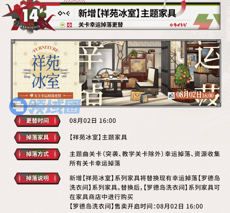 新增【祥苑冰室】主题家具,关卡幸运掉落更替