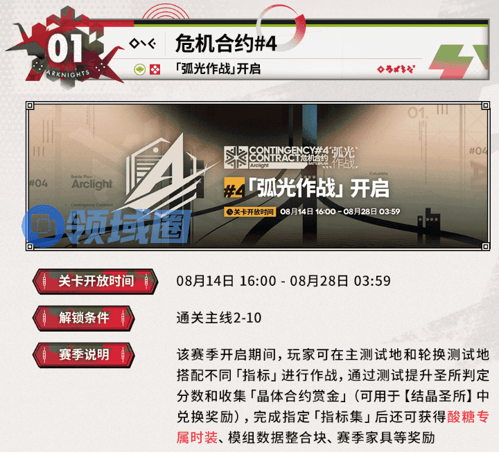 危机合约#4「弧光作战」开启,时间:8.14~8.28