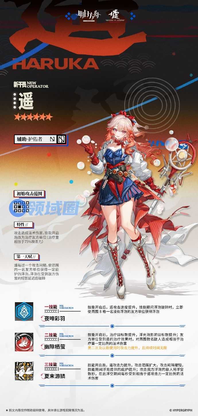 三技能:攻击力提升,攻击范围扩大,攻击间隔缩短,技能期间浮泡提供的庇护提升;攻击我方浮泡的敌人将浮空数秒,在此浮空期间每秒受到相当于遥攻击力一定比例的法术伤害。