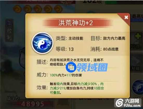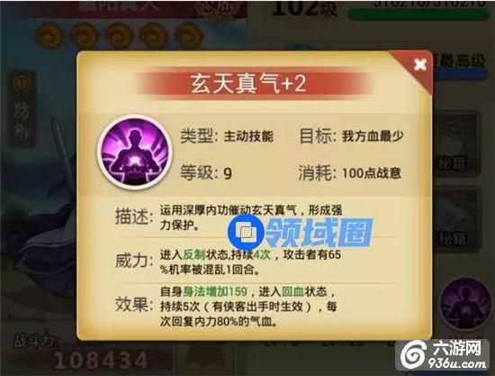 此次重阳真人升红阶,携神话技能”玄天真气“再临江湖。“玄天真气”可为我方血最少的侠客提供“玄天功”的BUFF,该BUFF最高可为侠客提供5次回血效果,每次回复该侠客80%内力的血量。