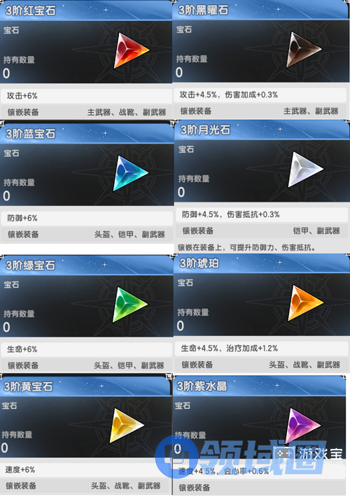 黄宝石(速度) → 紫水晶(速度+暴击率,平民暴击不足时适用)。