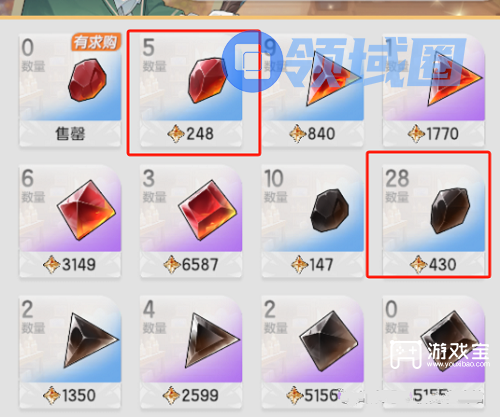 以红宝石为例,2级红宝石248,3级红宝石840,很显然,在这里,3级红宝石卖出更具性价比。