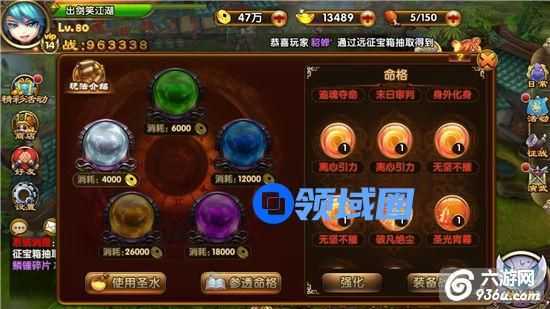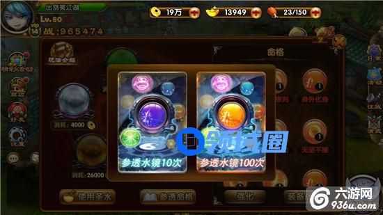 在游戏界面的右侧“征战”功能里有一个玩法叫参透水镜,参透水镜里包括使用圣水及参透命格。